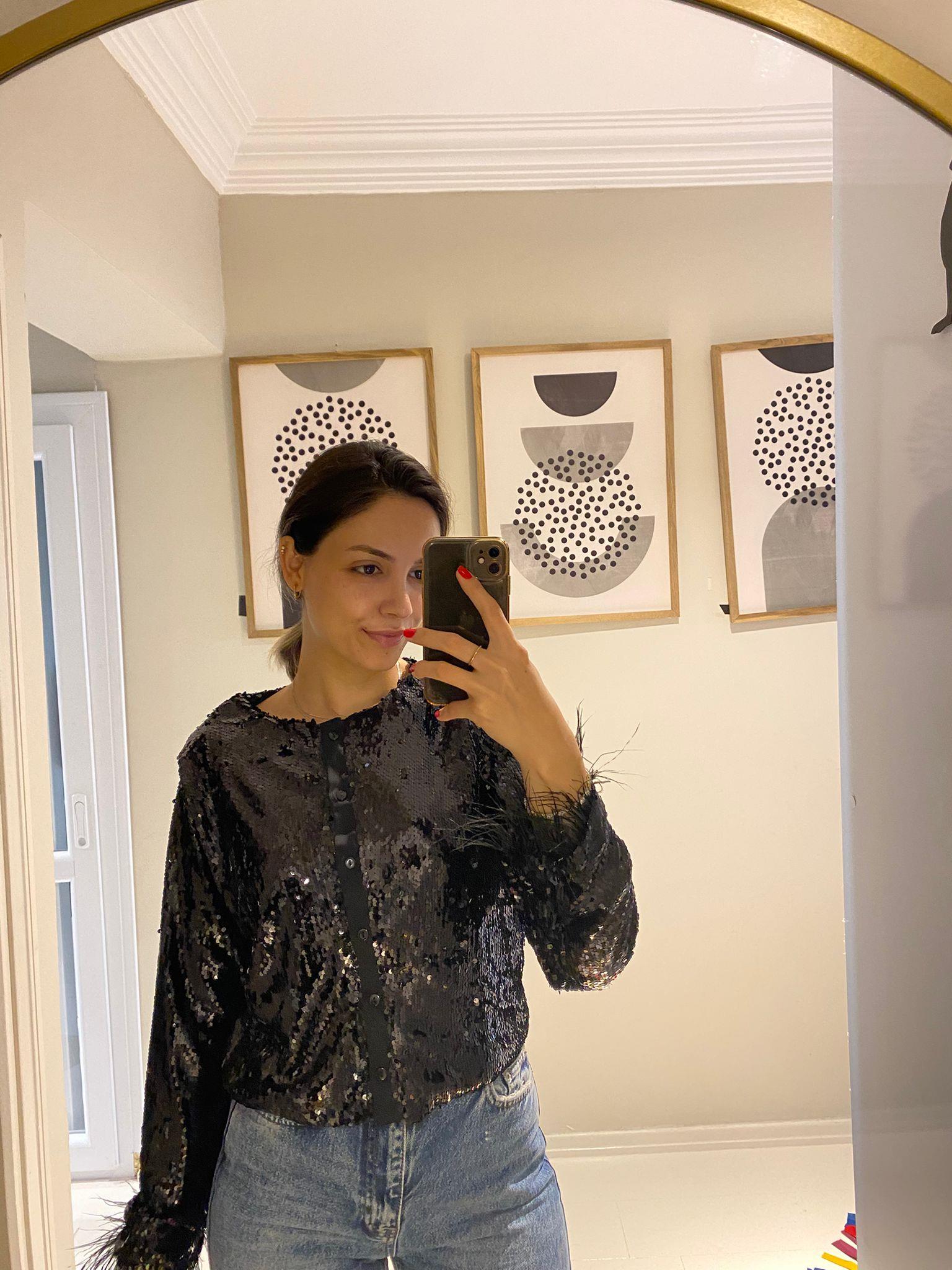 SİYAH PUL PAYET ASTARLI TASARIM CEKET
